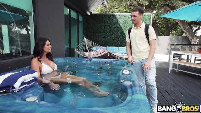 Description: Abby Somers was the hot tub playing with herself when her step son Johnny Love came home unexpectedly early. She asked if he would join her but he was much more eager to play video games. She turned around a bend over with a pretext. There was a big pink buttplug in her ass. Johnny got curious. What was that? She promised she would tell him if he would join her in the tub. Johnny was indeed curious. He stripped down to his briefs and jumped into the water. She asked if would be her buttplug. Johnny’s wildest dreams have been surpassed. He played with the buttplug. Pulled it in and out. Out and in. Then he put 2 fingers in her ass, 2 fingers in her pussy. She gave him a bj and they fucked. First in the pussy, still in the hot tub. Then they went inside for anal. Johnny slowly squeezed his big dick into Abby’s ass. Then he started to fuck her for real. Then she was riding him. He fucked her again until he s**t his cum all over her face.