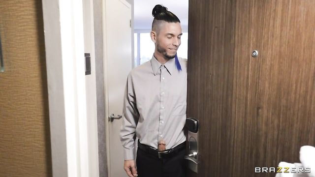 Description:Voluptuous Ashlyn Peaks and Tyler Steel check into a hotel for a romantic weekend. Tyler seems distracted by the adorable hotel maid, Zoey Sinn, but Ashlyn knows that he probably just needs a blowjob! When their hook-up is interrupted by a knock on the door, frustrated Ashlyn decides to take a shower. Tyler answers the door and, to his surprise, tattooed Zoey is standing there ready to jump on him. These two better watch out, if Ashlyn catches them, she'll be ready to give them a fast and hard lesson in fucking!