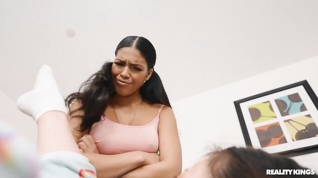 Description:Van Wylde hides around the corner and watches when his roommate Maya Farrell starts spanking her gamer gf Lulu Chu, and when the lesbians start scissoring, he takes out his dick and strokes it! Maya chases him away, but Lulu wants some of that dick, so she creeps into Van's room, where he's fucking a toy pussy with his VR headset on, and sneakily tags in to get her pussy fucked instead! When Maya comes looking for her gf, she joins in, sitting on Lulu's face until Van finally realizes this snatch is the real thing. These gamer babes can't get enough of that cock and each other, working Van's joystick till he hits all the right buttons, then sharing his load.
