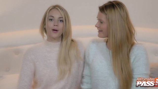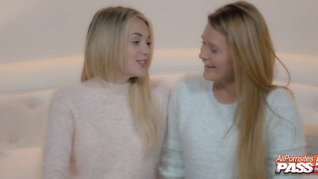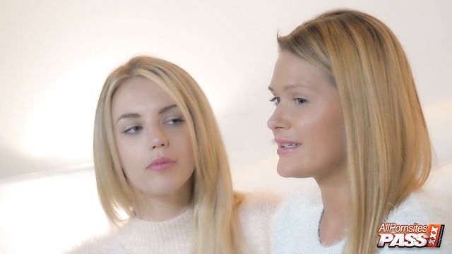 Description: Nothing like watching two pretty blonde girls strip down and admire each other's panties. Blake Eden and Abby Cross are hot blonde girls giving us a great view of those nice small breasts and panty-clad bottoms. You'll get to watch these ladies put on a sexy show for us and strip down those soaking wet panties.
