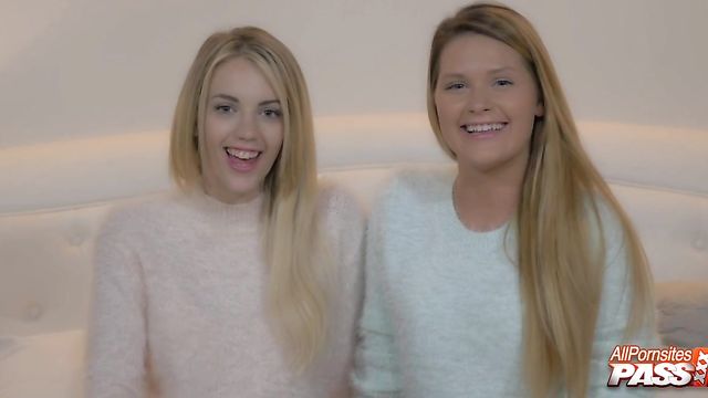 Description:Nothing like watching two pretty blonde girls strip down and admire each other's panties. Blake Eden and Abby Cross are hot blonde girls giving us a great view of those nice small breasts and panty-clad bottoms. You'll get to watch these ladies put on a sexy show for us and strip down those soaking wet panties.
