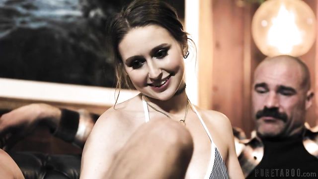 Description:In this prequel to THE BAD UNCLE, Crystal (Laney Grey) is swimming in a pool when it starts to rain. She jumps out and tries to get back inside her house, but realizes the doors are locked. It is revealed that she has recently moved in with one of her parents, but their relationship isn't great. The parent in question seems to have forgotten she was swimming and locked her out before leaving for work.Crystal has no choice but to go next door and see if her neighbors will let her in to wait out the storm. Dressed only in her bikini, she goes to knock and is greeted by Leon (Seth Gamble) and Joe (Charles Dera). They welcome her in to take shelter.Crystal asks for a towel but they ignore her, asking her rapid questions about her recent 18th birthday instead. Leon and Joe playfully joke that they didn't get Crystal anything for her birthday, and begin to muse about what they could potentially get for her. She can't quite put her finger on it, but Crystal is getting a strange feeling from these two men.Leon then takes off his top and puts it on Crystal so that she can be warmer. She sits between them on the couch and Joe can't help but comment on her feet. Joe then suggests they give her a foot massage as a late birthday present. Before she has time to accept, Joe and Leon surround her, one giving her a foot-rub and the other a back-rub.The conversation quickly devolves into probing questions about her sexual history, where Joe and Leon learn that Crystal is a virgin. Crystal is overwhelmed, but when Joe mentions that his cock is hard, she appears intrigued. Joe asks her if she wants to touch it, and she does. Soon enough, Crystal is holding both their cocks in her hands, lustily stroking them. Leon and Joe know full-well that this little virgin has fallen right into their trap. They have an intense threesome together- one that Crystal will never forget.