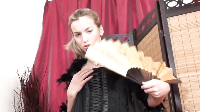 Description: Some ladies just like throwing on the lingerie before they start playing with themselves. Laura is one of these ladies, getting her fishnet stockings and corset on before she starts going to town. She's got a very hairy pussy surprise waiting underneath her panties, and she knows that she's going to make you hard as a rock when she starts working herself and using a cigarette holder at the same time. She's got the perfect mix of trashy and classy going on, making you go wild for this teen.