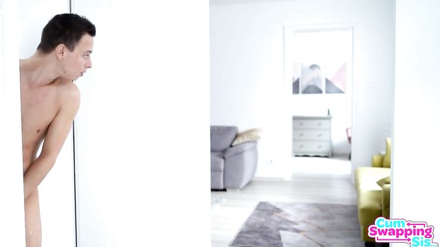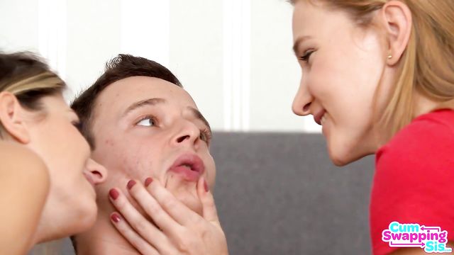 Description:Rebecca Volpetti and Ivi Rein are doing their homework together, but Rebecca is really bored of school. Getting up, she offers Ivi a massage. There's nothing platonic about the way Rebecca rubs Ivi's titties down. As the girls begin to make out in earnest, Ivi's stepbrother Nikki Nutz walks in on them. They pull their shirts down and separate quickly, switching gears to gossiping about Nikki. Rebecca decides she wants to see Nikki's dick. Nikki comes out of his room ready to go take a shower, but he's not having any of it when the girls try to get him to whip it out. Instead, he ducks into the bathroom thinking that's the end of it.Rebecca and Ivi wait until they hear the shower going, then barge into the bathroom to insist that Nikki show himself off for them. Nikki tries to kick them out, but they won't leave. They try encouraging him by showing their tits and asses, but Nikki remains unmoved. The girls steal his towel and leave him with nothing to dry off from the shower. When Nikki tries to get to his room without being accosted, he closes the door to find the girls waiting for him on the other side. They put on a bit of a lesbian preview show for him and then shove him onto the bed and go to work blowing him together. Nikki wasn't into the idea of showing his cock, but now that his stepsis and her friend are sucking him off and deep throating his dick, he's suddenly very on board with the plan.Rebecca is the one who wanted the D, so she gets the first spin on Nikki's stiffie. Climbing aboard with Ivi's help, Rebecca bounces away in cowgirl. Ivi gets on top for a go in reverse cowgirl as Rebecca mounts Nikki's mouth so he can tongue her twat at the same time. Rebecca gets to enjoy Nikki's fuck stick in doggy as she eats Ivi out. When it's her turn again, Ivi lays down and spreads herself wide open for Nikki to take her as Rebecca caresses her hands all over Ivi's tight body. When Nikki is ready to pop, Rebecca lays down as Ivi delivers a combo blowjob and handie. Ivi manages to catch all of Nikki's jizz in her mouth, paving the way to snowball her treat back and forth with Rebecca as they swap spit and cum in deep kisses.