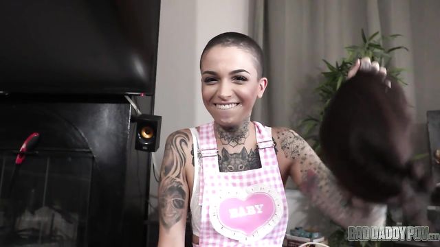 Description: We’re always taught to straighten up and live properly. We don’t how but somehow, Leigh Raven missed one of those classes and didn’t learn the straight part of it. Being a teen mooching off her stepdad and doing what the fuck she wants with her body. On top of that, she even took in a female lover. The stepdad didn’t have choice but to teach Leigh another set of lessons. With his dick. Leigh Raven admires her step father. She trusts him and feels very safe around him. He earned her respect when he graciously accepted her lifestyle. Leigh Raven has been abused and punished enough. Her mom is mean and Leigh doesn't like that her sweet step daddy is stuck with such a cunt. She decides that it is time to reward the man of the house. Leigh has never gotten the chance to feel a real man's cock inside her. She wants to have her step daddy be her first. At first he objects to his tattooed step daughter. When Leigh Raven wraps her young lips around his hard cock, he can't resist. He agrees that if his lesbian step daughter wants to start experimenting with her sexuality, it should be with someone who is going to treat her right. He doesn't want to see his beautiful little girl Leigh Raven be violated or disrespected. The all natural tattooed slut goes to work on her step dad's hard cock. She slurps and spits all over his shaft. Leigh Raven sucks cock with passion and excitement. She wants to get him sloppy wet with her mouth before she spreads her young legs open to let him take a turn in her tight pussy. Leigh Raven displays her hairy pussy and all natural bush to her step dad as he works his thick cock into her young cunt. She moans in ecstasy as she is filled with the grown man's cock. Leigh bends over to take a pounding from behind. She pops up her cute butt as he fucks her deep. Leigh Raven talks and screams as she services her step daddy. She wants to make him cum hard and will do whatever it takes. Leigh opens her legs again and gives him her tight young pussy to stroke his cock into. He pumps away until he can't resist. When there is no holding back, he pulls out and dumps his load of cum all over his step daughter. Her tattoos highlight the warm cum all over her slutty young body.