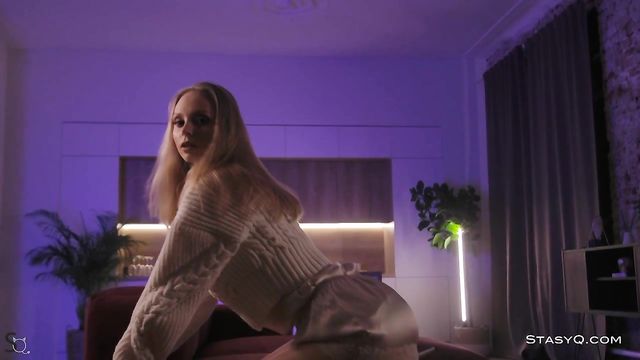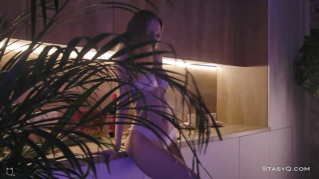 Description: Cuddly and erotic, ArielQ exposes her charms. This heavenly blonde goes into a full seduction mode in release 491. She begins her sultry show by caressing her milky skin, paying close attention to her juicy thighs, firm booty, and perky breasts. Said Energizer stands before this StasyQ model and grasps her beauty with his camera. Instead of stopping, ArielQ turns her kitchen into a podium and flashes her soft, beige lingerie. As the subtle light falls on her slender waist and fair complexion, ArielQ dances around and takes the show to another level. Overwhelmed by desire, this blonde goddess takes her bra off, lays her body on the kitchen table, and strokes her breasts, sensitive nipples, and her tummy. Before you know it, she takes her panties off, lays on a burgundy sofa, and turns her naked tushy toward the camera. To spice things up, ArielQ keeps her high heels on throughout the show.