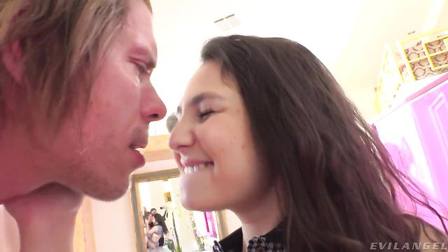 Description:Alluring brunette Liz Jordan entices in dainty, two-piece schoolgirl attire. The sweet-faced damsel smiles widely for director/stud Mick Blue's POV-style camera. 'I'm very lucky, today,' Mick confides. Liz masturbates her shaved, panties-free slit, seductively rubbing herself with her speedy fingers. She inhales Mick's big cock, pleasing him with a blowjob and well-paced stroking. He worships Liz's delectable ass with a deep rim job. Mick fucks her pussy doggie-style as the lithe beauty wails with pleasure. He glides his lubed finger into her asshole and eats Liz's twat. Mick methodically fucks her butthole with a giant toy dong. And then he plunges his diamond-hard dick up her ass for a buttfuck! Liz laps her anal flavor from his meat with obvious ass-to-mouth lust. He slams her holes some more, and then ejaculates inside her cunt. The creampie drips from her sweet, saturated snatch.
