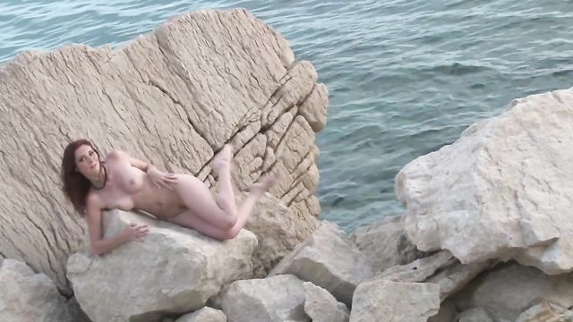 Outstanding outdoor nude solo session with a hot redhead babe
