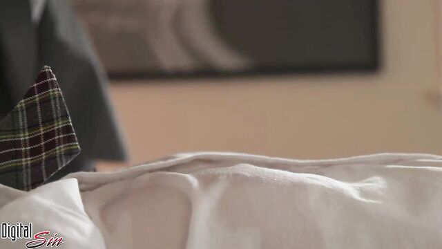 Slutty schoolgirl Danni Rivers likes hardcore fuck in the bed