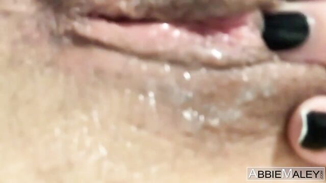 Beautiful young brunette Abbie Maley is touching her wet tight hole