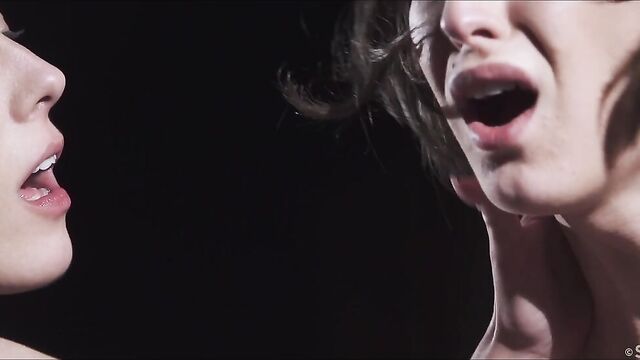 Description:Intense passion simmers between horny beauties Emylia Argan and Lexi Layo, in Andrej Lupin's sultry erotic movie "In Black." Identically dressed in leather and nylons, the two vixens kiss avidly, their golden flesh glowing in the darkened room as they caress each other's body. Their kisses are electric as they begin to undress, licking soft, sweet, voluptuous breasts. Emylia removes Lexi's tight lingerie, kneeling to stroke and suck her gorgeous shaved pussy. When she has Lexi gasping and shivering with excitement she stands again, rubbing her lover's sensitive clit, pulling her hair until Lexi's knees buckle in pleasure. Eager to please, Lexi squeezes and fondles Emylia’s big breasts lovingly, before the tall, curvy brunette turns her around and eats her pussy from behind. She sucks, licks and fingers Lexi skilfully, driving her to another powerful orgasm. Lexi deftly removes her girlfriend’s lingerie, dipping down to lap at Emylia's perfectly trimmed bush. Emylia orgasms forcefully, and Lexi stands to kiss her again, still diddling her toward another climax. Emylia's breathy sighs echo into the darkness surrounding them, and they kiss and smile, relaxing into one another, utterly satiated. It’s as intense an experience for the viewer as it is for the two lovers, the stark surroundings putting the emphasis squarely on their intimate liaison.