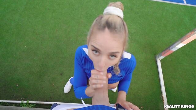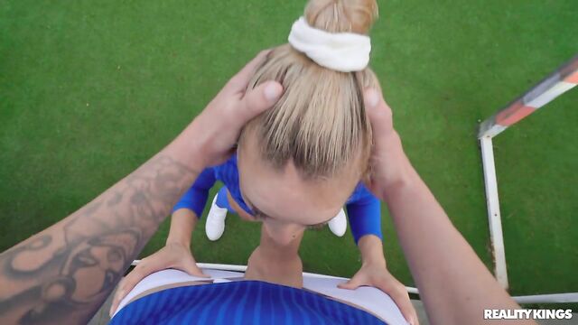 Description: Potro De Bilbao is giving up his free time for a special extra coaching session with Geishakyd on a private court, but he's not impressed with her devotion to the beautiful game. Even after making her stretch out her booty and practice drills, Geisha's skills aren't improving. But there's one thing she knows she's good at, so she decides to make her coach feel better with a blowjob. After some no-hands face-fucking training, Potro drills the petite blonde's pussy!