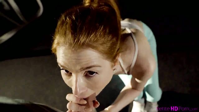 Redheaded hottie Pepper Hart getting fucked in a dimly-lit room