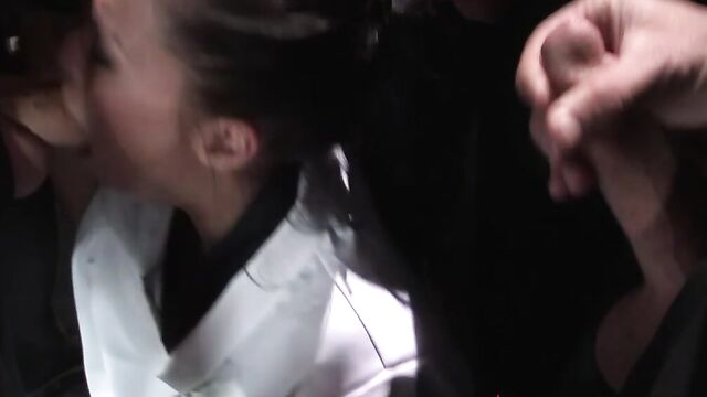 Description:Pretty babe London Keyes, together with Dana DeArmond, Dana Vespoli, Chad Diamond, and Wolf Hudson, walk slowly toward the camera. The boys are wearing a tux while the girls are wearing what seems to be a school uniform. On the other hand, London is wearing a sacrificial robe. The gang comes to a halt. The others surround London. London gets on her knees to suck the boys’ cocks and the girls’ strap-on dildos. She is completely surrounded by real dicks and fake cocks. London tries to suck all of them one by one. Her mouth is constantly kept busy. The gang keeps their dicks close to her face. Her two hands and mouth are not enough to please all the cocks. She continues to ravage their big cocks, their dicks slide deeper into her mouth as she allows her throat and mouth muscles to relax. The sausage fest is just starting. The group laugh at her and spit on her face, but she loves the humiliation; London’s face is now covered in spit. They all take turns shoving their cock into her mouth. Her lips and tongue are constantly moving around. She tries to fit two cocks into her mouth. Dana dunks London’s face in ice-cold water. She strokes London’s neck while she is deepthroating a cock. The blowbang fest gets wetter and messier by the moment. Her face is starting look like a wet rag doll. The gang is not yet satisfied. They jam their cocks into her throat. London turns around as she sucks them in close succession. There is no moment of rest for this little whore. The crew keeps on taking turns inserting their hands, cocks, and dildos into her mouth. They throat-fucked London and dunk her in water until she is gasping for breath. Her labored-breathing echoes throughout the room. London can’t help but groan, moan and scream every time a cock pulls out of her mouth. She is totally overwhelmed by the cocks right on her face. After the wet and messy blowjob fest, the guys shower London with their warm cum. Her face is now full of spit, cold water, and warm cum. They made her into a complete cum basket. They clean her face with ice-cold water.