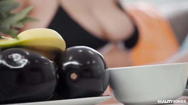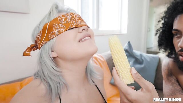 Description: After a quick dip--and tittyfuck--in the pool, James Angel brings his gf Adaline Star inside for the surprise taste test he's set up for her! He blindfolds the curvy blonde and has her see if she can guess the fruits and veggies by taste, then slips his cock in her eager mouth too. James gets a taste of Adaline's pussy before she sits on his cock and gets fucked nice and hard!