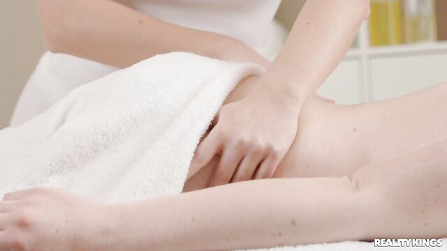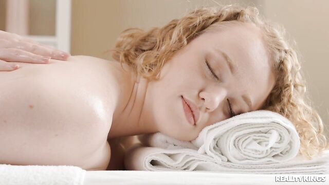 Description: Sarah Calanthe is very eager for her massage with gorgeous blonde Kittina Clariette, because she craves their sexy sessions all week long. Kittina's had a naughty idea for how they can release some extra tension: a strap-on. Sarah can't wait to try it! She strips down and lies on the table for a hot oil rubdown, then Kittina lets her fingers stray to Sarah's wet and eager pussy, fingering her before she puts on the harness and fucks Sarah doggystyle. Sarah moans as Kittina pleases her pussy, then rides the sexy masseuse before it's her turn to don the toy and make Kittina cum!