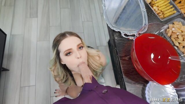 Description: It's a party, and Oliver Flynn has no idea what he's walking into. Cori Vore spies jealously while Kate Dee flirts with him right in front of her aloof hubby. Codi ups the ante by pulling her tits out and serving them up on a platter just for Oliver. Oliver tries to put away her jugs and move on to mingling. Codi has other plans and Oliver ends up joining the party with his pants around his ankles. When Oliver runs off on both ladies slutty advances, Kate lets Codi play with her pussy under the plates. Codi’s fingers get stuck inside Kate, forcing a sneak away to a bedroom. Oliver ends up in the bathroom with Jazmin Luv, who sees his hard on and gets straight to sucking. Oliver stumbles out of the bathroom and into the bedroom, really just trying to get his pants on, where he finds Codi and Kate deep in mid-scissor. For this, his pants come fully off and a threesome it is.