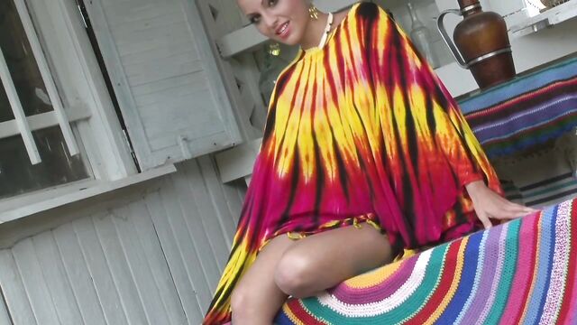 Curvy long-legged goddess demonstrates her fully nude shape