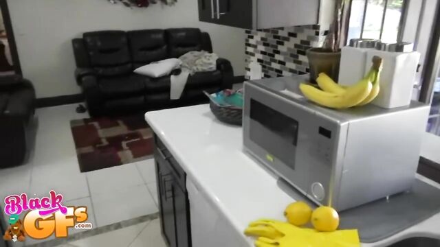 Description:This fine wifey was washing the dishes when her man decided to pull out the camera and get naughty with her. She was looking super hot while she worked in the kitchen in her bra and panties. Her big juicy ass looked delicious in that yellow thong, and he couldn't resist a feel. She didn't like him recording her, but he was persistent and after negotiating with chores, she finally gave in. This gorgeous babe heated up quickly, got on her knees, and started sucking him off right there in the kitchen. She had some nice dick sucking lips she wrapped around his cock. Then the action continued in the living room where he pounded that hot pussy on the couch while those plump tits and dark nipples bounced all around from the stroking. Of course, with an ass like that, he had to hit if from the back. But it was just too good, so he pulled out and glazed her hot tits with his man juice.