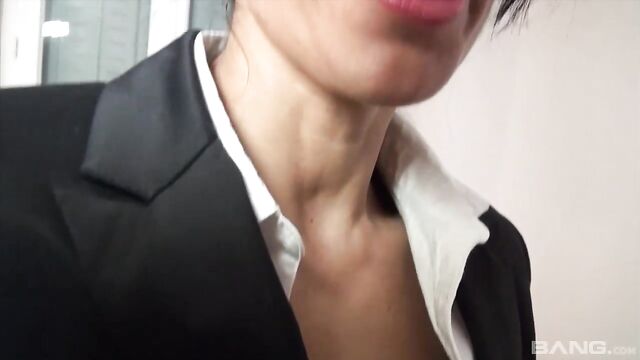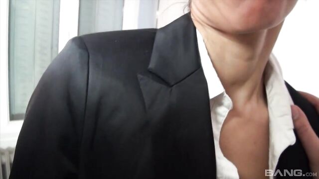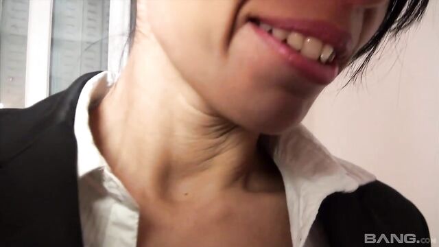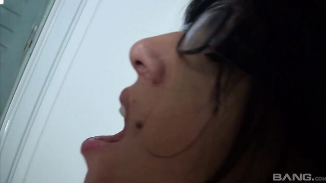 Description: If you are into the naughty librarian look, this brunette is gonna do it for you. Luckily she's not in a library right now because she gets so loud as this dude gets after that pussy. She was so horny she doesn't even get naked, but instead pulls her panties to the side so he can stick it in!