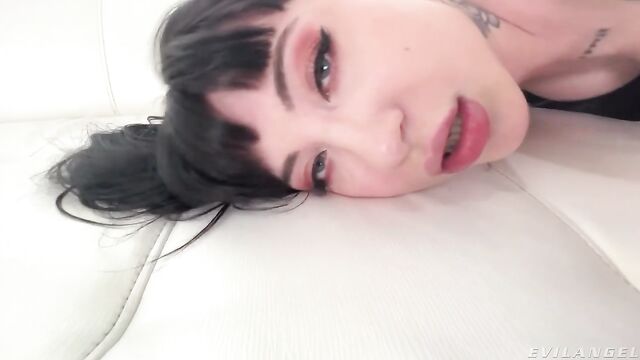 Description: Devastatingly hot alt-girl Charlotte Sartre rocks a black vinyl fetish skirt and top with strapped, cherry red platform heels. Pornographer Mick Blue's POV-style camera work captures their private date. Charlotte shoves two wet fingers into her tight pussy and masturbates. She takes his big cock in her mouth for a stroking, spit-soaked blowjob. Charlotte works his powertool with her hands while squeezing the base of his boner into a restrictive cock ring. The decadent, raven-haired sweetheart sucks his ball sack and rims his sphincter! Charlotte bobs as his boner skewers her naked slit. Mick pounds the heavily tattooed harlot's cunt in multiple positions. She rubs her clit as Mick's thick prick spunks in her box. Barefoot Charlotte squats on the floor, letting the creampie ooze out. She eagerly laps the load from the floor, basking in perverted reverie.