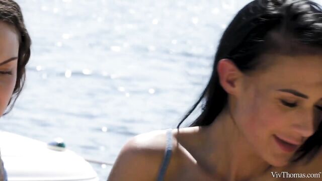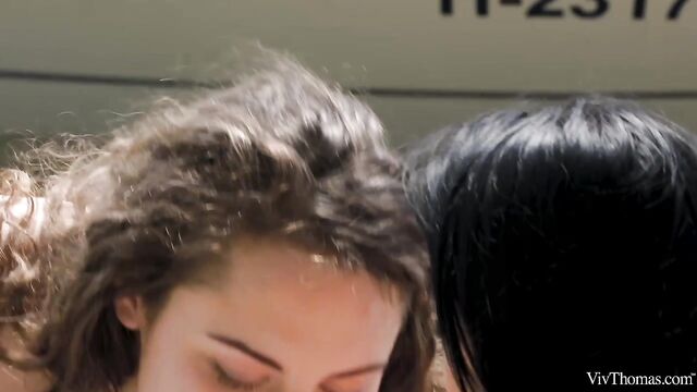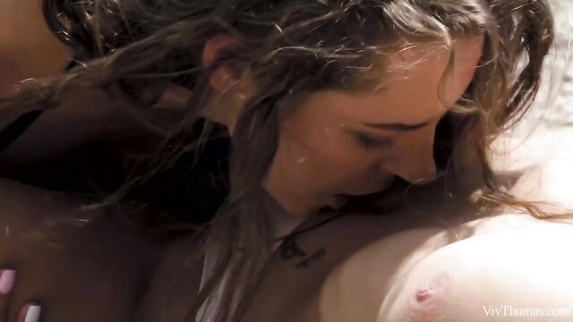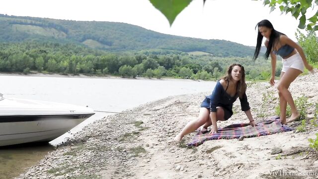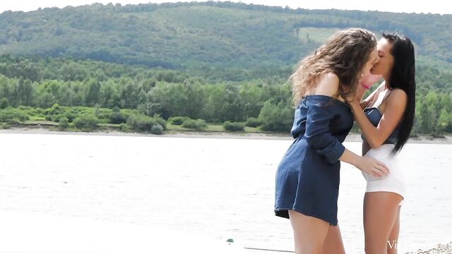Description: Busty babes Nicole Love and Sofia Curly meet on the river and are instantly attracted to each other, as episode one of Sandra Shine’s erotic lesbian series "The Pick Up" begins. Wavy haired beauty Sofia entices Nicole to join her onboard her boat, and they travel to a secluded spot upriver. The moment they step ashore they begin to grope and kiss each other voraciously. Pushing her onto a blanket on the sand, Sofia bares Nicole’s perfect breasts and flicks her tongue over her stiff nipples. She takes off Nicole’s shorts, trailing her tongue down to her tight panties and lapping at her pussy through them. Tugging aside the panties, Sofia licks Nicole’s shaved slit avidly, before rolling her onto her front and burying her face deep between her ass cheeks. As Sofia intensifies her oral pleasuring, jolt after jolt of sexual electricity shoots through Nicole’s body. She whimpers with delight as Sofia relentlessly tongue drills her; as her climax kicks in, her body trembles and she slumps onto the sand, sated. Sofia strips and straddles Nicole’s pretty face, fondling her fantastic big breasts as she rocks steadily, her face a picture of arousal. Nicole holds Sofia’s juice-slick pussy lips open and licks her skilfully. Sofia grinds down harder, curvy body undulating and boobs jiggling as she orgasms. The gorgeous girls kiss, breasts pressed together, both utterly enamored.