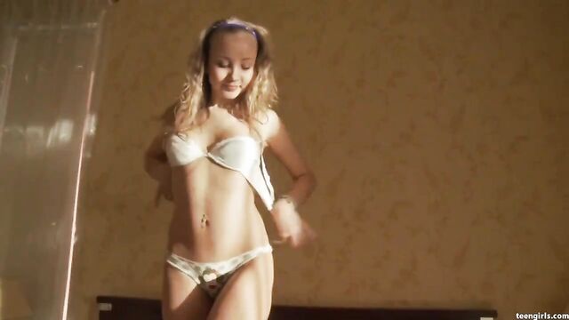 Description: Cherri is pure teen paradise on full and complete display. We find our golden-haired plaything lounging on the bed, her delicious figure touched by the crawling fingers of sunlight pouring through her bedroom curtains. She fiddles around with her belt, then like magic, effortlessly shimmies out of them. Her body is not yet fully appreciated until Cherri stands up and exposes her dripping curves. Drink up that bouncy little bum and salivate at her innocent apple blossom breasts. It's just only to get unbearably worse when she breaks out her toys...