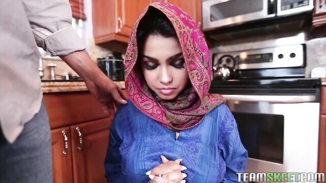 Description:Ada is a foreign exchange student from the Middle East looking for a place to stay, in exchange for some housework, while she continues her studies. She answered an ad looking for just that and thought it was her lucky day! The day of her move in came and she met the owner of the house for the first time. He was impressed with her willingness to get to work, but once he find out she was raised to obey ANYTHING a man tells her to do, he had other types of jobs in mind for Ada. He made her drop to her knees and suck his cock in the kitchen and he made her take off her pants so he can fuck her on his kitchen counter! He wanted to know what her titties looked like so he made her to pull those out too! This big tittied desert beauty was apprehensive at first, but after a couple of thrusts her pussy was dripping wet and happily taking that huge dick as well as the huge load he made her drip out of her snatch!