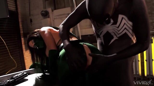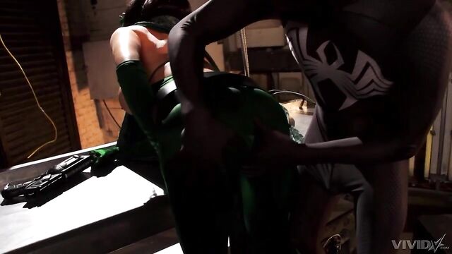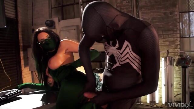 Cosplay hoe with huge tits Juelz Ventura jumps on a hero's dick
