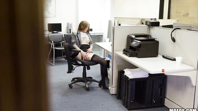 Description:Ava stays after the office closes to do some cam work, but the horny IT guy catches her in the act! When he comes to say goodnight, she pushes the nerdy pervert's head into her pussy, then rides him to get the perfect creampie!