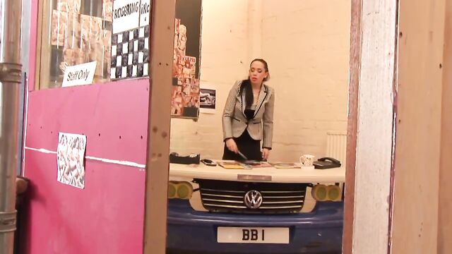 Hardcore pound session in the garage with nice-looking busty models