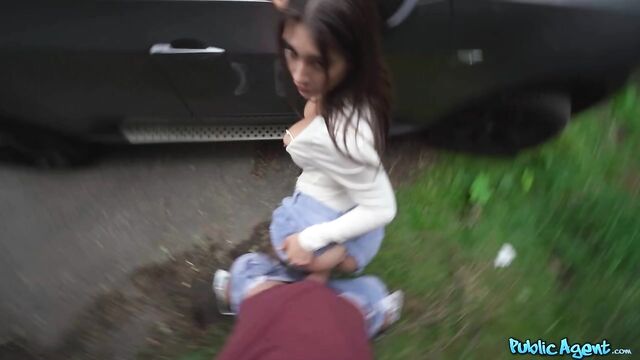 Description:I saw this brunette sitting on her suitcase on the side of the road. Her name was Tru Kait, and apparently, after a fight with her boyfriend, he had dumped her in Prague and left her with 50 euro... then he left! Kait was from LA, and needed money to get home, so I offered her some cash to show me her boobs. She was not shy, and showed me her big, nice tits. For more, she showed me her ass, and then I pressed my luck and asked if she would give me a blowjob. We went off together and she fell in love with my dick, trying to deepthroat it all. She tore her shorts open and turned around, presenting her holes for me to fuck her pussy doggystyle. I fucked her missionary in my car, then she rode me on the ground until I dropped a hot load of cum on her tits.