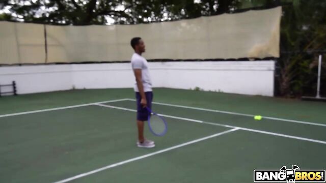 Description: Kimberly Snow came to play some strip tennis with Jonathan Jordan. It was a win win situation. If she lost she would get naked and she would fuck a big dick. If she won, she would fuck him anyway. So they played some tennis in the heat. A few times she pretended to be bad. A few times the boys had to cheat with the rules. But she kept losing her top, her pants, her panties until she was playing naked tennis. Then she went straight for Jonathan’s cock It was bigger than her tennis racket. They went inside the house. She gave him a deep and long bj. Then they fucked. She was riding him. They did the doggie. Jonathan showed off with his long dick acrobatics. In the end he came in her face and a big part of his load got stuck in her hair.