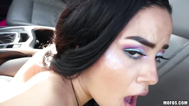 Description:Wild ebony party gal Maya Bijou knows how to get to the festival on time! This tutu-wearing rave chick shakes her booty for a ride, then thanks the driver by flashing her tits, then deepthroating and riding his big cock in a public field!