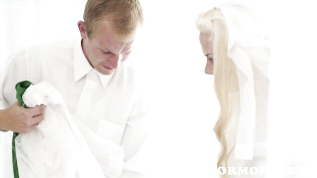 Description: Mormon girl Emma Snow meets with Brother Snow who performs her holy wash before she completely undresses and tends to his holy cock!