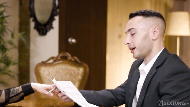 Description:Gorgeous Stacy Bloom meets with her lawyer Raul Costa to discuss some serious matters. She gets turned on seeing this hot guy. Stacy shows off all her lovely assets to him before sucking his big cock. Raul bends her over and pounds her tight asshole with his throbbing cock before filling her ass with hot loads of cum.