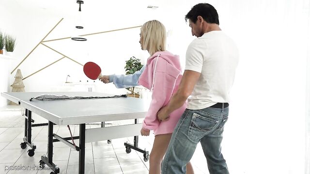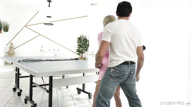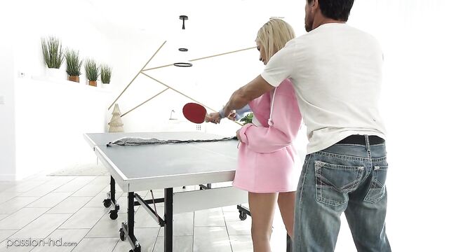 Description:Kiara tries to distract Tommy during a game on ping pong by stripping and distracting him. She finishes the game naked and masturbates on the table before having passionate sex.