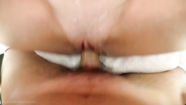 Description:This week a proper spinner named Brittney, a 5'2" teen with a pussy so tight that it takes me by surprise and I barely manage to pull out before I bust an epic nut all over her from stomach to face. Her pussy is so amazing, after I cum I stick it back in and fuck her more until it ends with a possible unfortunate accidental insemination. I probably shouldn't have bragged last week so much about not having any child support in my future.I found Brittany through a little networking with other ECG girls and I am sure she's right for the site about the time she was telling me the story of banging one of her girlfriends with a strap on, a girl she charmingly refers to as one of her "bitches." As we talk, Brit explains that I'll be very happy when I finally get her naked as her pussy is "just right." I urge her to peel off her pants and prove it as we drive. Turns out she's right, from what I can see, she's got a very delicious looking pink puss. I'm impressed by her sassiness and when she gets her panties off I slip my hand between her legs, but she's not much of an exhibitionist so I head for the location.Once we get to the room I don't waste time getting her naked and with good reason, her body is amazing. From perky little B cup tits to her "just right" pussy, this girl is one tight little package. She'd told me that the only way she can get off is by having her clit stimulated, so I go right for it first with my fingers and then with a toy which she REALLY likes. She seems a little too nervous to cum, so I switch it up and have her suck me off for a bit. She's very talented and has great natural deep throat skills, swallowing me up to the balls with ease.I get her on the bed in preparation for some serious, extensive long term pussy pounding fucking. I'm thinking that this girl's body is so fine and that pussy so tight and creamy that I am probably going to fuck her so long and hard that I'll need to change tapes in the cameras. Anywho, maybe I over thought this a little because before I know it, I'm blowing a huge load and coating this girl in jizz from her face to her puss. So, production note to myself: don't over think this shit.I'm still hard as a rock so I keep fucking her and she loves every second of it. When I'm finally done her pussy is a creamy mess of her cum and mine. Which reminds me to have the uncomfortable birth control talk with her. Good news, though! She knows what the morning after pill is for! Bullet dodged! Bottom line: tightest little pussy I've had in a long, long time. She really brought it out of me, and by "it" I mean jizz. I am definitely going to try to convince her to come back so I can more of her on camera, including some anal.