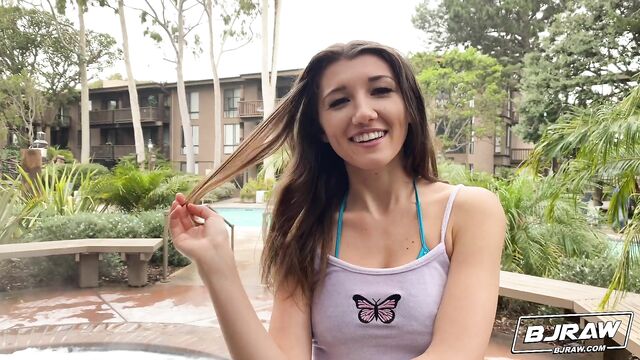 Description:Today was a little bit chilly out so I decided to hit the hot tub to warm up and relax outside. Just as I was leaving, a really sexy girl was headed to the hot tub. I stayed and chatted her up and she came over afterward. I also came… all over her pretty face.